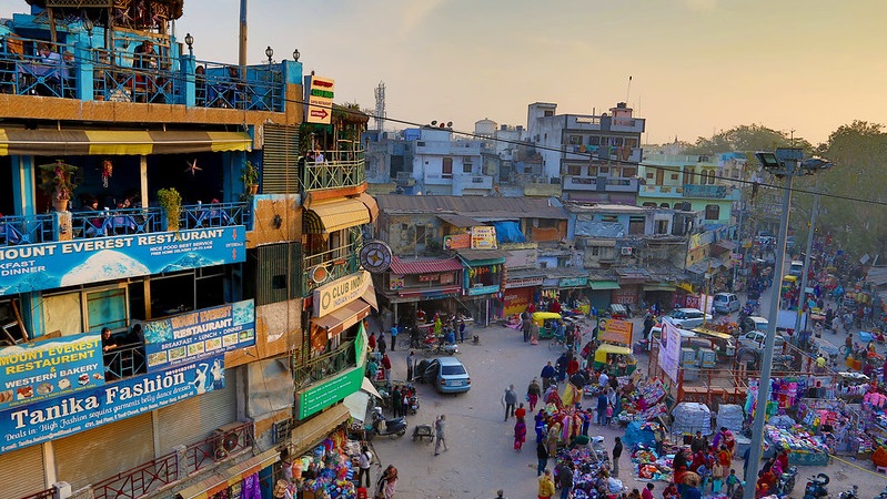 New Delhi in the evening. Delhi is the second largest city in India with just over 11 million people. It serves as the capital of India and is home to all of three seats of the Indian National Government. The city is home to numerous different historic sites, museums, and gardens. The economic importance of Delhi cannot but understated. New Delhi is also home to many different ethnicities and cultures. As seen in the image, many signs in the city use English as well.